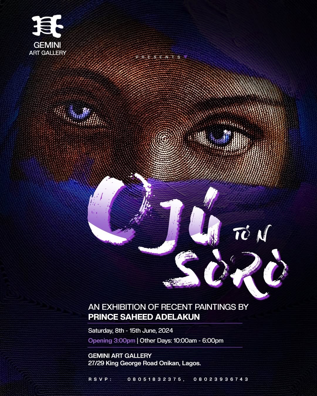 “Oju To Nsoro” was more than an exhibition; it was a journey into the heart and mind of Prince Saheed Adelakun, offering insights into his quest for self-expression and societal understanding. Gemini Art Gallery is honored to have hosted this remarkable showcase and looks forward to supporting more artists in their creative endeavors.