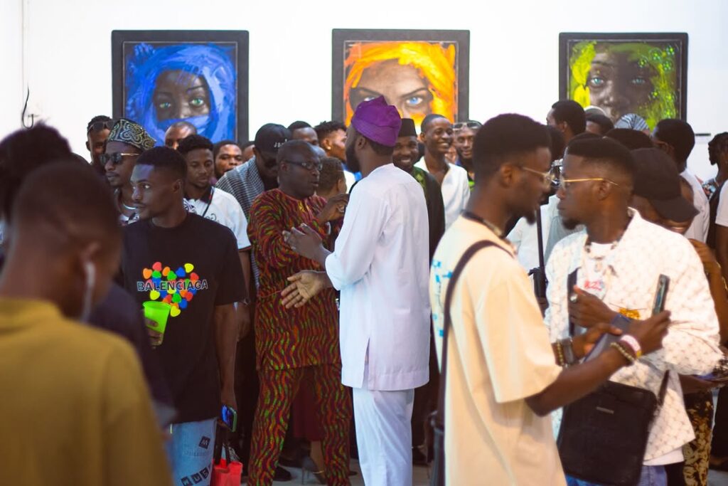 Inside, guests were captivated by the depth and emotion conveyed in each painting. Adelakun’s use of color, texture, and form invited viewers to ponder the stories behind each piece. The artist was present throughout the event, engaging with attendees, sharing insights into his creative process, and signing autographs on exhibition catalogs.